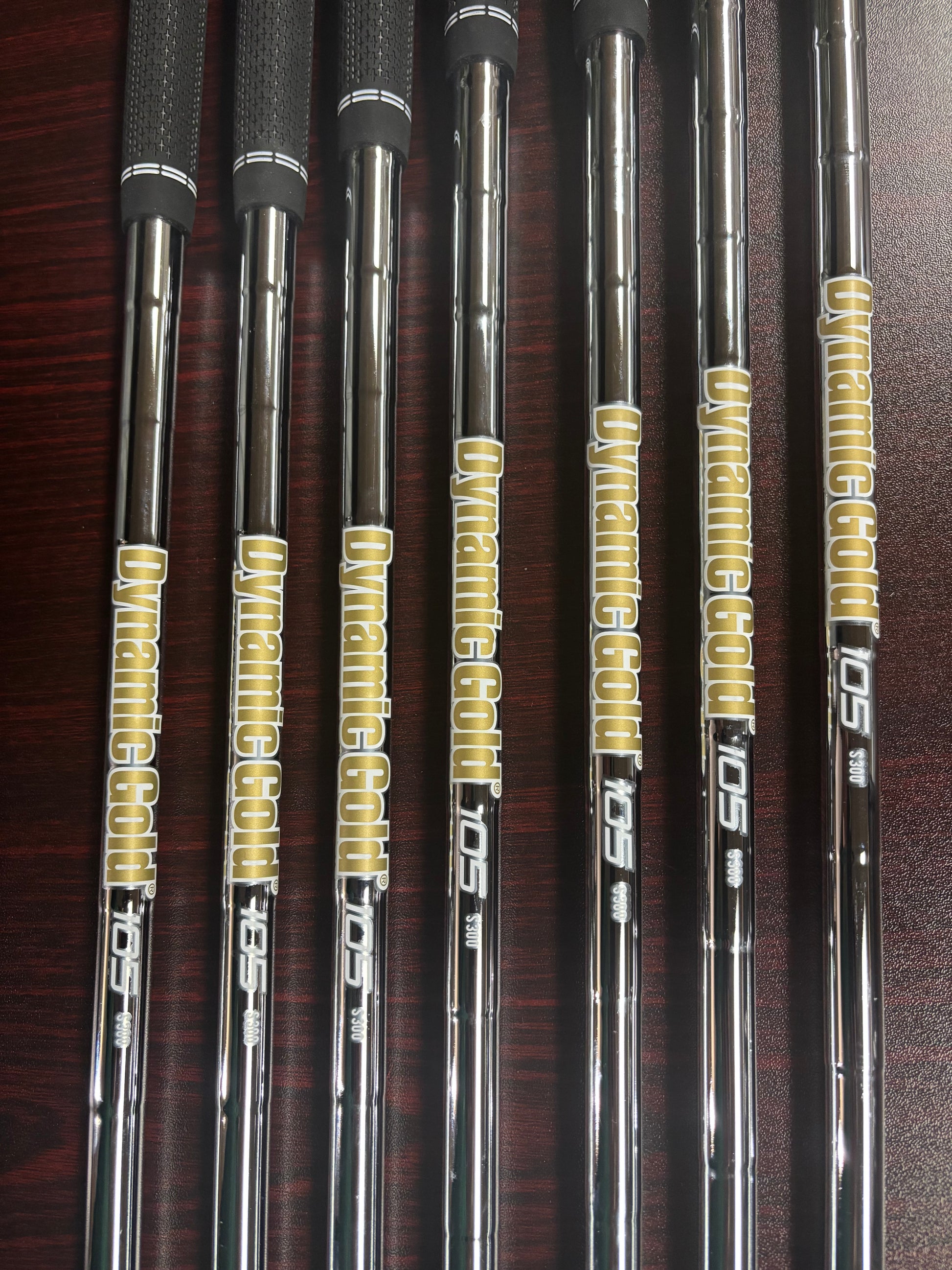 This set has the True Temper Dynamic Gold 105 s300 (steel stiff) shafts in them.